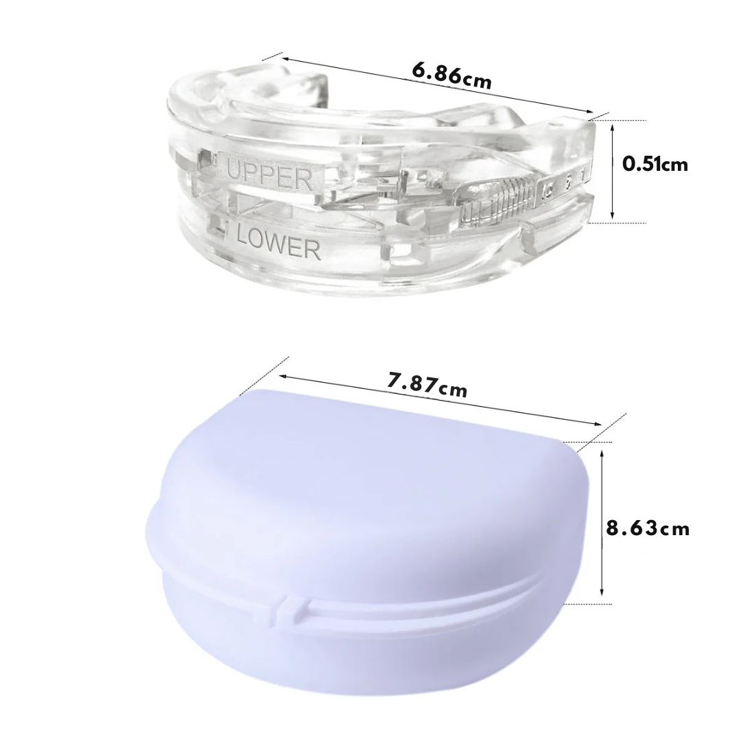 Dzięki Nakładce przeciw chrapaniu odzyskasz spokojny sen bez uciążliwych dźwięków. Ustnik delikatnie ustawia szczękę w naturalnej pozycji, utrzymując drożność dróg oddechowych i redukując chrapanie.